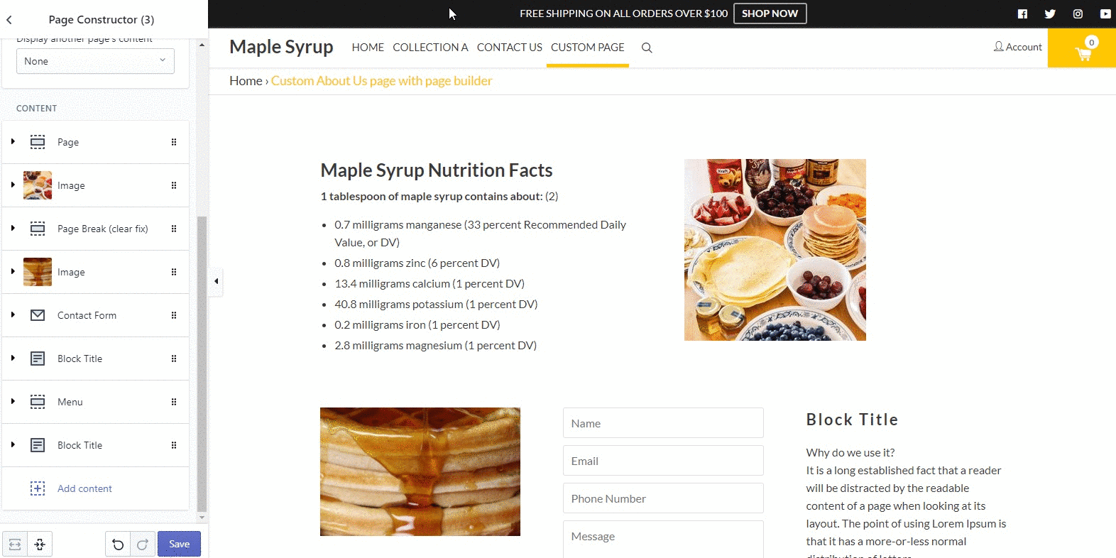 See your page as a grid. You can define the number of columns in each row of you page design. This way, you set the width of each block of content.